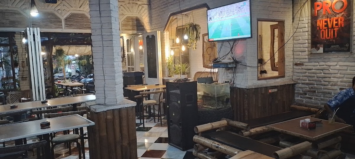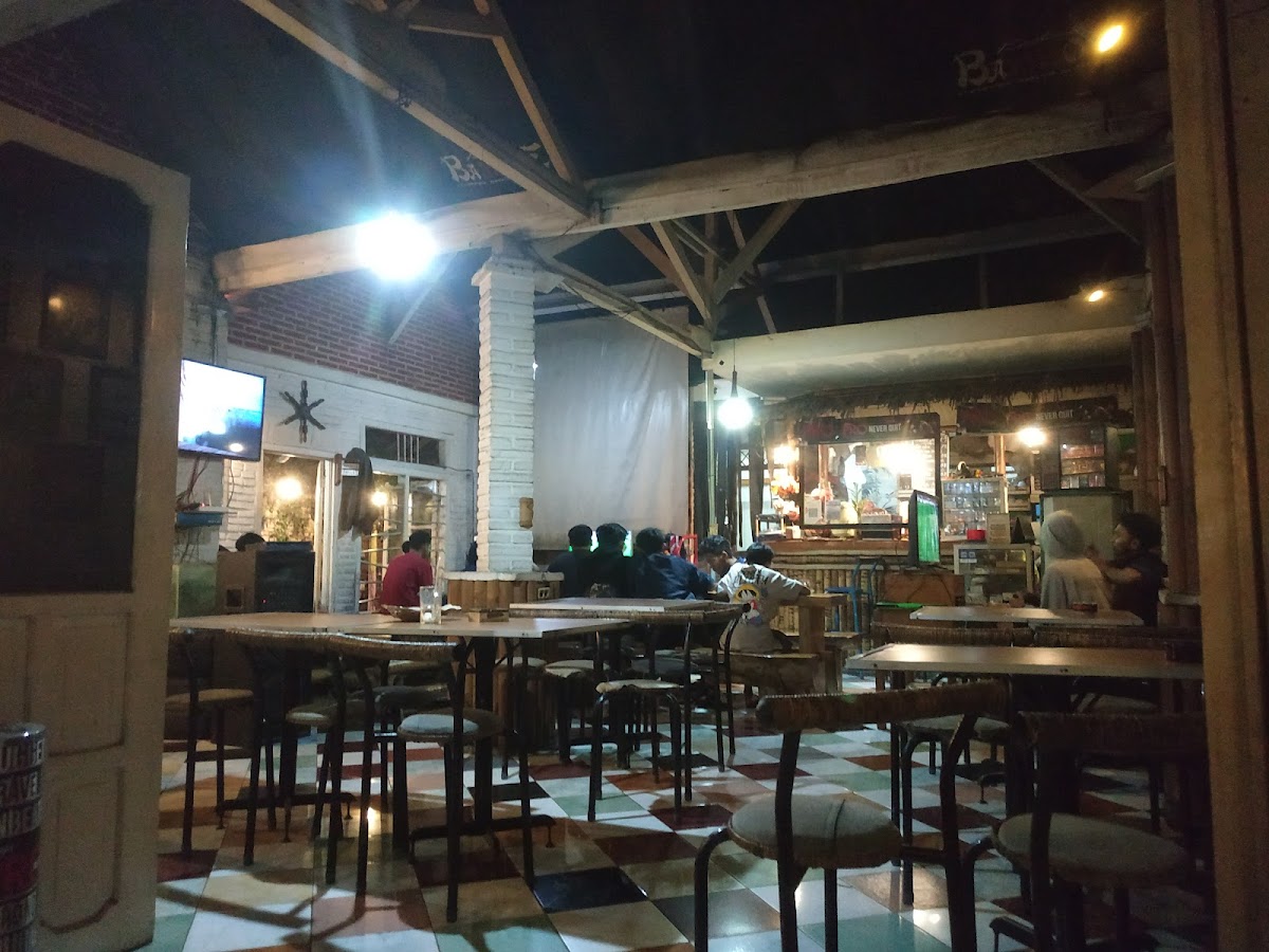 Cafe yang menggunakan Bambu di sebagian besar Furniture nya, sehingga Bisa menghasilkan Suasana Adem dan Nyaman. Lokasinya bersebrangan dengan BAGONG, terdapat juga Musholla (di area belakang), dan Toilet. Disini terdapat Berbagai macam menu mulai makanan, camilan, minuman dingin dan panas, dll. Untuk harganya tergolong cukup murah, tapi untuk mengakses Wi-Fi harus membayar 1k. Disini juga tersedia PlayStation3 (4 device). -_- Pelayanannya cepat dan ramah, terdapat lahan parkir yang kadang tidak cukup(kurang luas). Untuk kebersihannya 7/10.